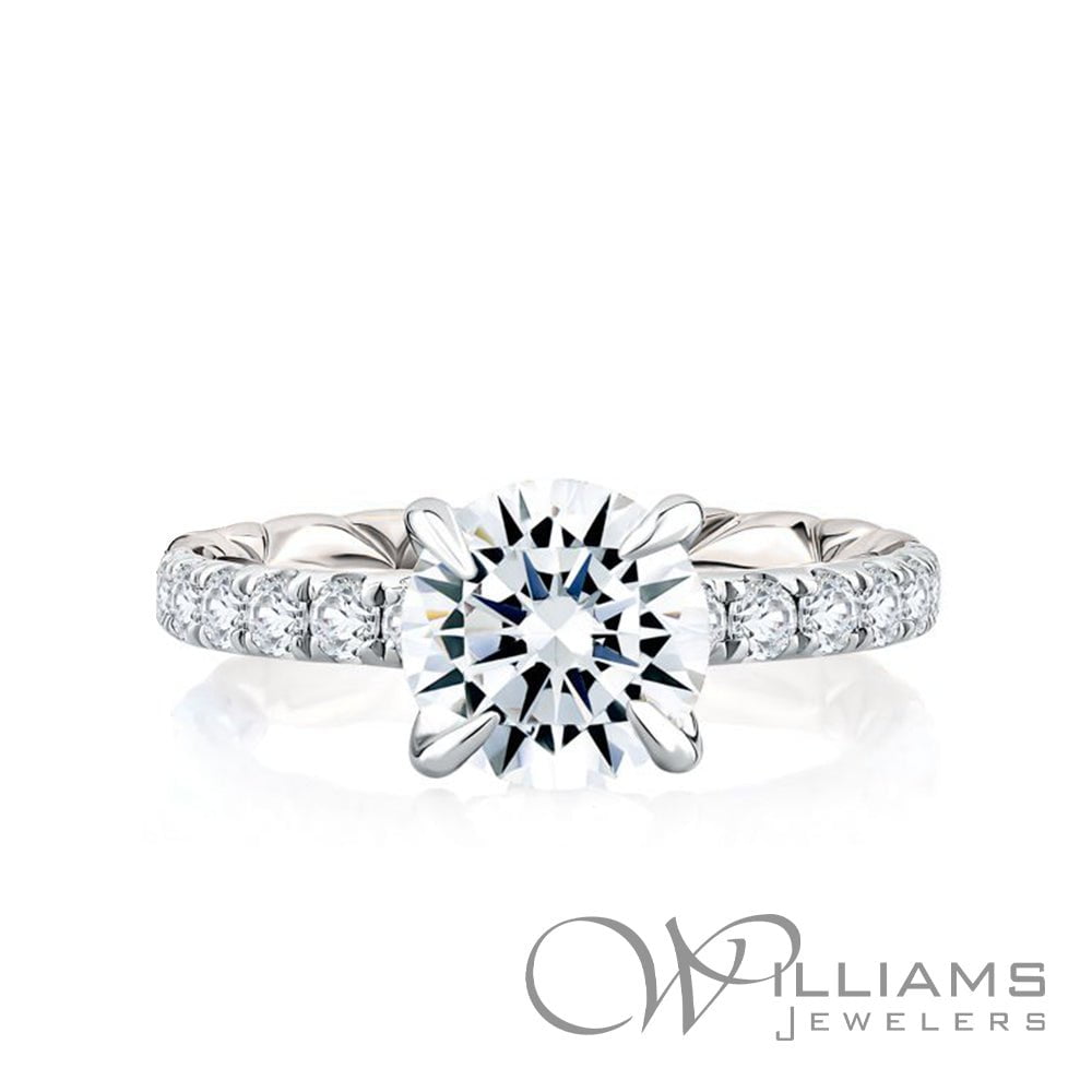 Each A.JAFFE ring undergoes a meticulous process, requiring over 80 hours of handcrafting, hand-setting, and hand-polishing. Additional steps like an extended casting cycle, burnishing, hand-cut pavé, and nine distinct quality checkpoints contribute to the rings' superior density and durability, more secure settings, and unmatched finishing. Only the finest raw materials are used, from calibrated diamonds that offer exceptional sparkle to hypoallergenic metals. This commitment to excellence is why A.JAFFE provides a warranty for life, rather than a limited one.