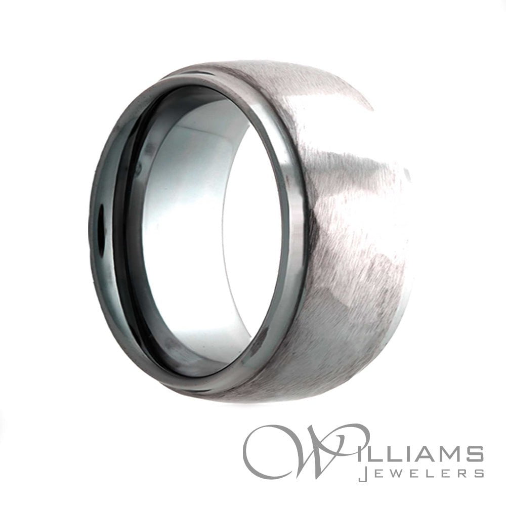 Heavy Stone Tungsten 6mm Dome Step Edge Hammered Wedding Band. Size 9