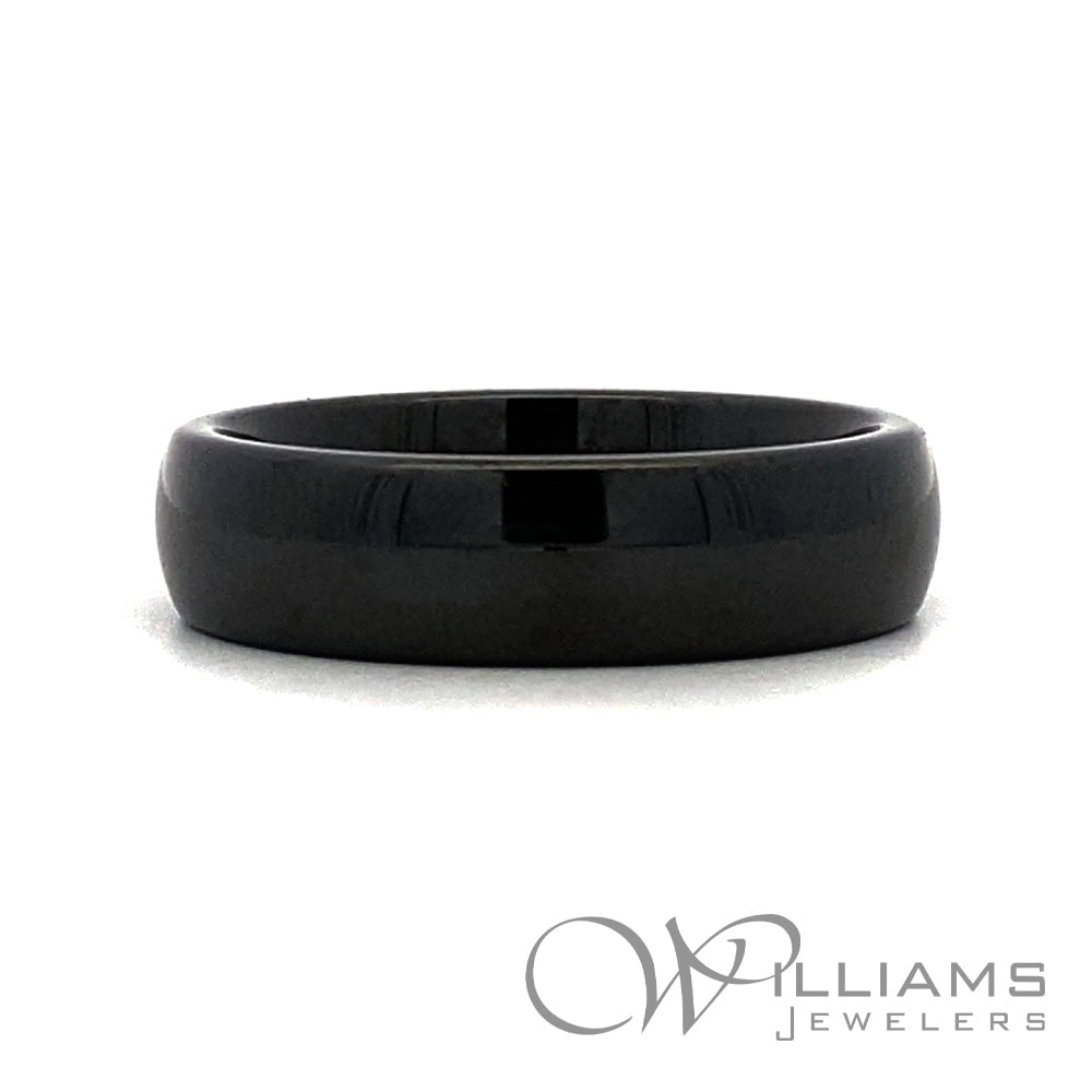Heavy Stone Black Ceramic 6mm High Polish Domed Wedding Band, Size 10