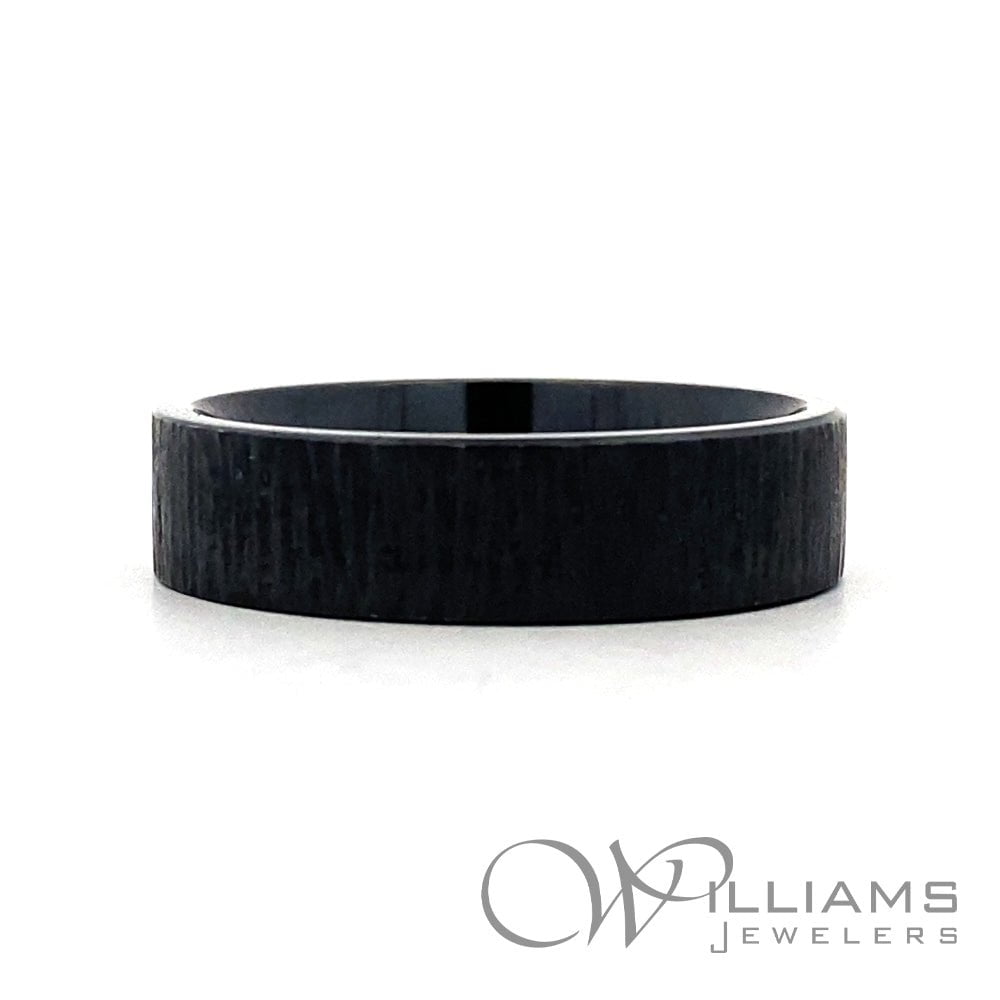 Heavy Stone Zirconium 6mm Flat Treebark Finish Wedding Band, Size 10