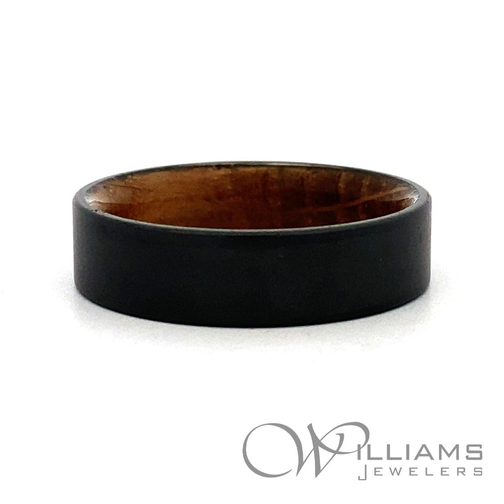 Heavy Stone Zirconium 6mm Flat Matte Wedding Band with Whiskey Barrel Interior, Size 10