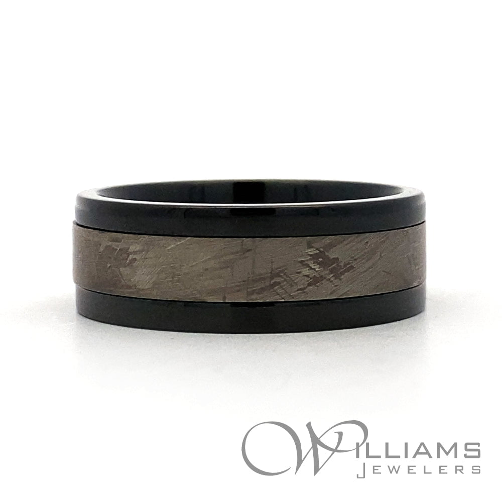 Heavy Stone Zirconium 8mm Flat Meteorite Alloy Inlay Wedding Band, Size 10
