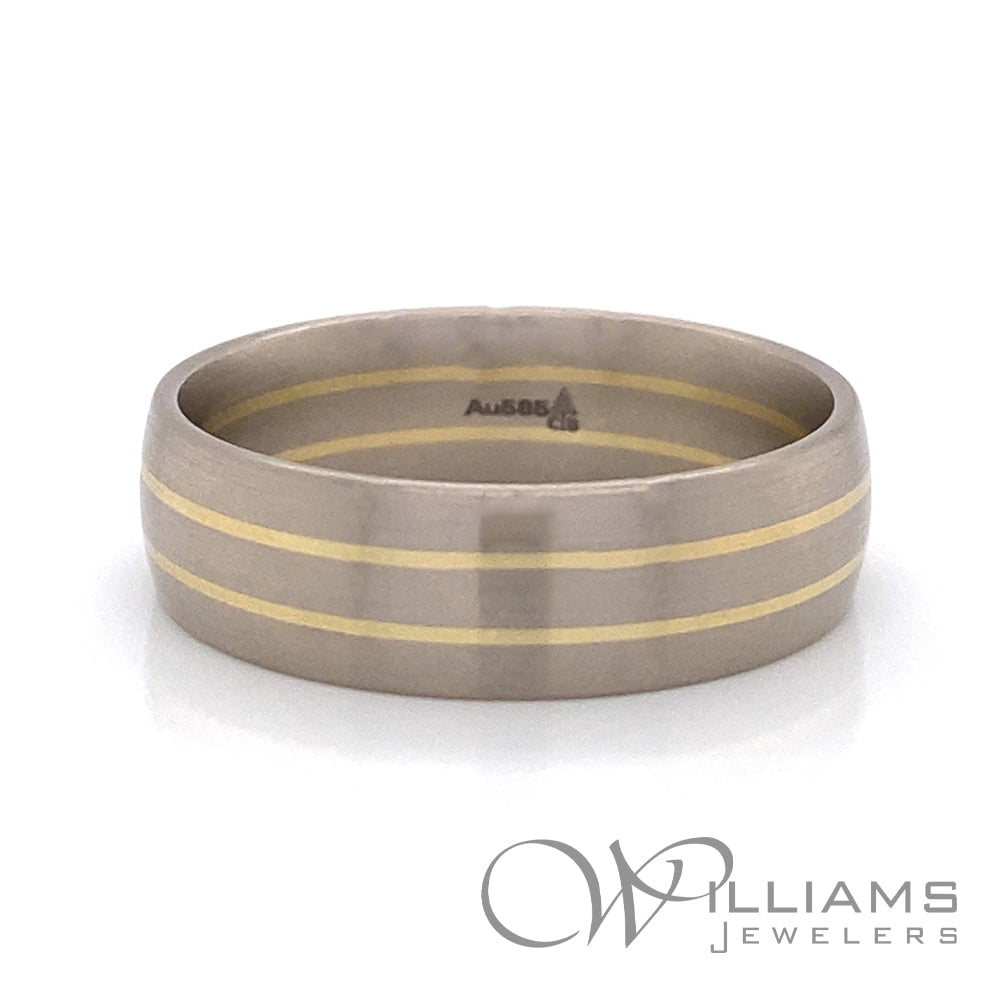 Christian Bauer 14 Karat White and Yellow Gold 6.5mm Satin Finish Mens Band, Size 10.5