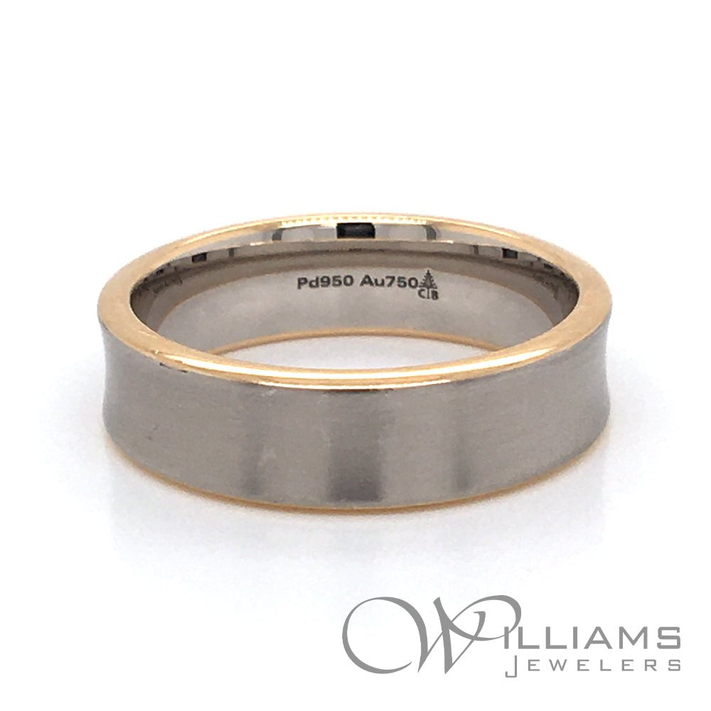 Christian Bauer Palladium and 18 Karat Rose Gold 6.5mm Satin Finish Center with High Polish Edges Wedding Band, Size 10