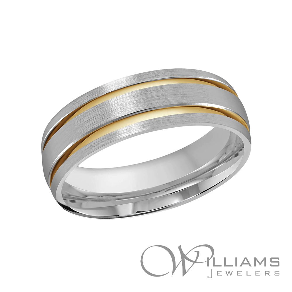 Williams Signature Design Model Yellow and White 7mm Satin Finish with High Polish Channels Wedding Band, Size 10
