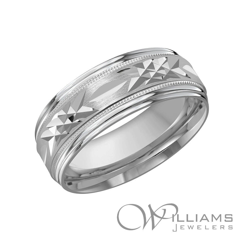 Williams Signature Design Model White 8mm Satin Finish Diamond-Cut Carved Wedding Band, Size 10