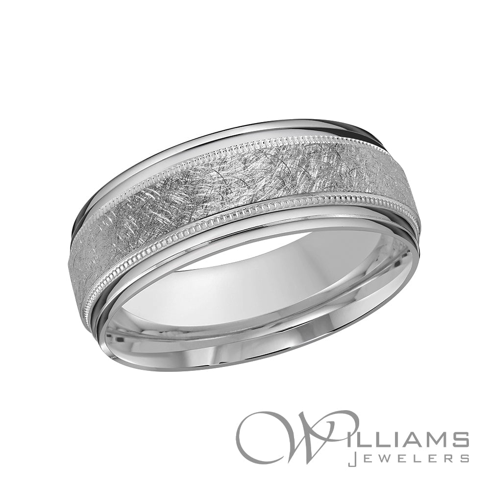 Williams Signature Design Model White 8mm Scratch Finish Milgrain Wedding Band, Size 10
