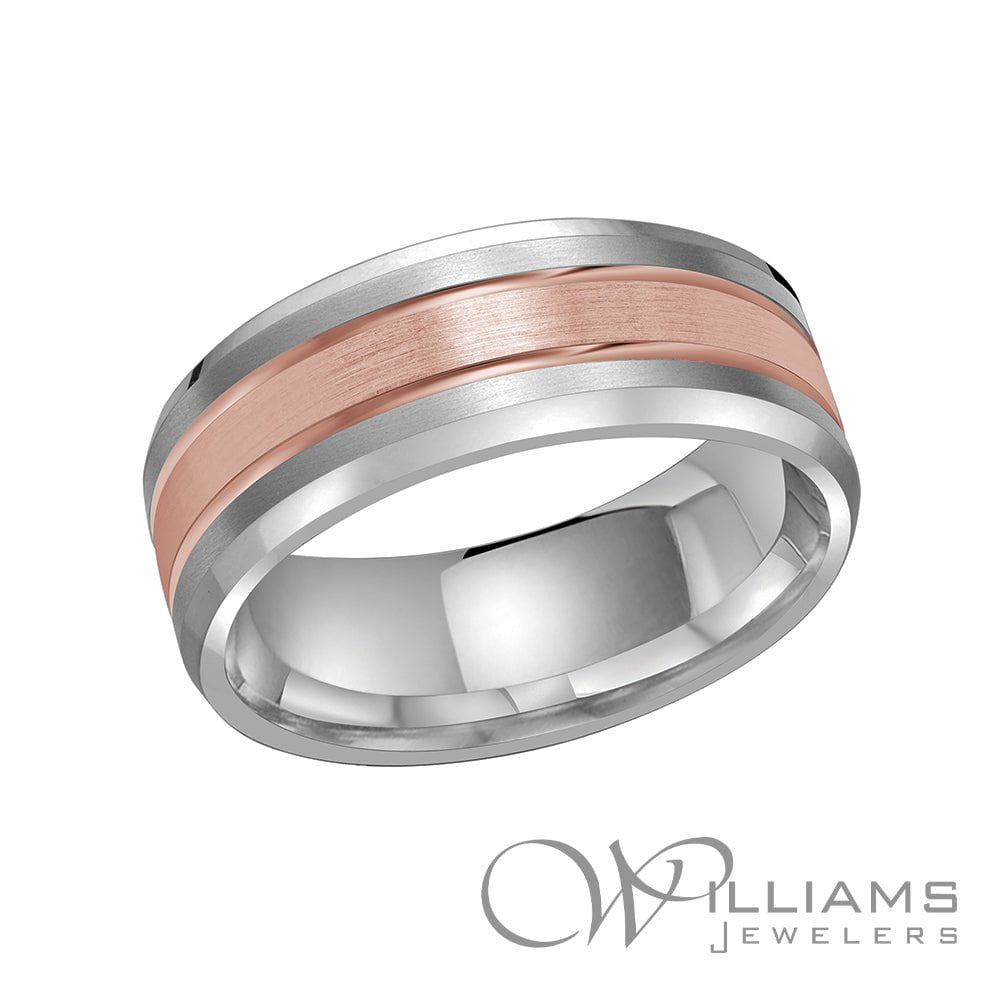Williams Signature Design Model Rose and White 8mm Satin Finish Beveled Edge Wedding Band, Size 10