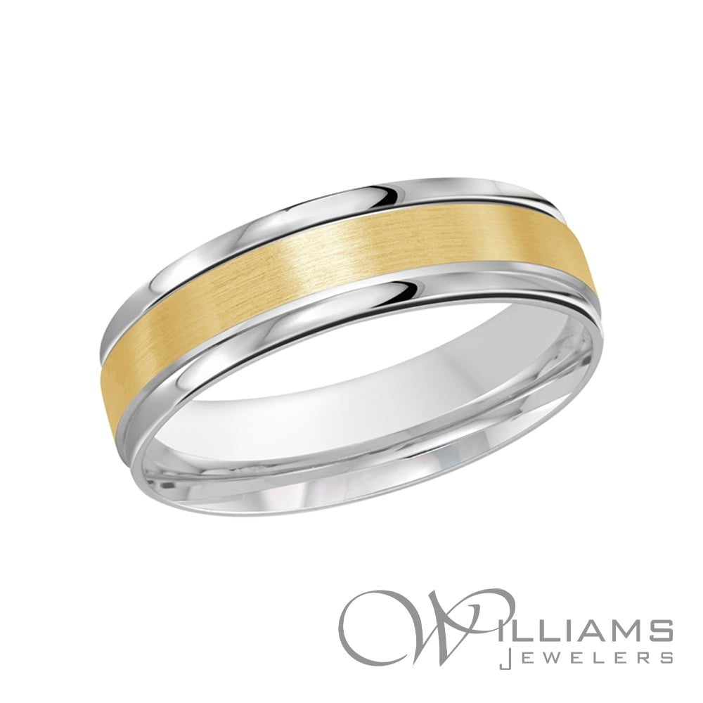 Williams Signature Design Model Yellow and White 6mm Satin Finish Grooved Edge Wedding Band, Size 10