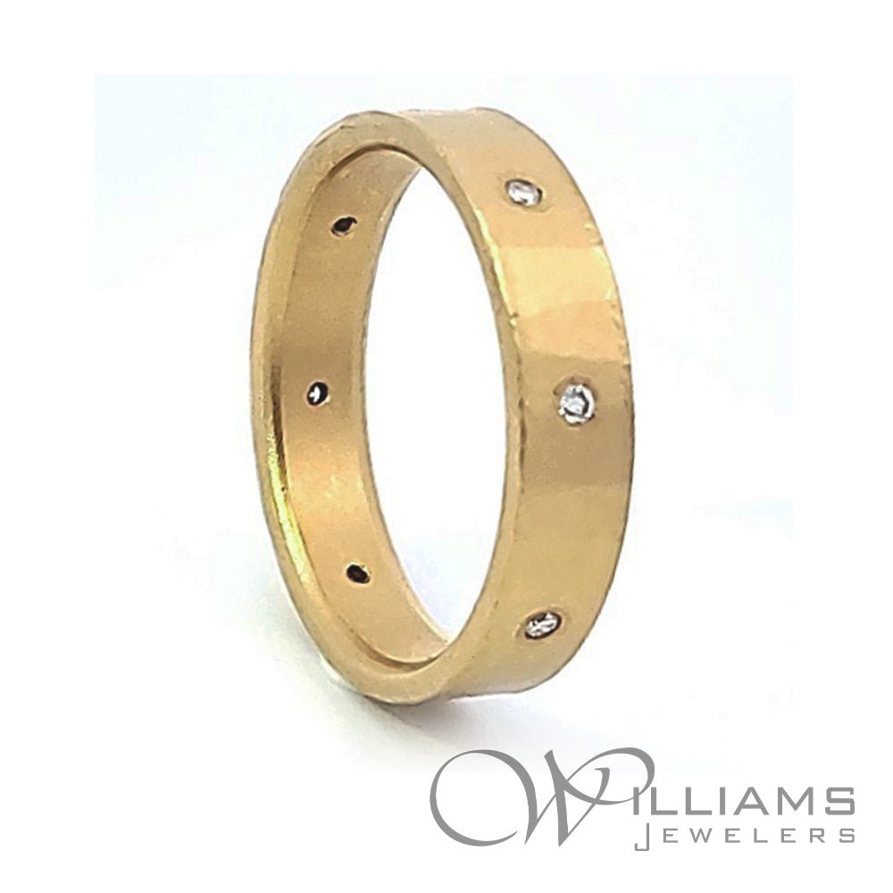 Heavy Stone Design Model 4mm Yellow Hammered Wedding Band with 8=.12tw Round Stones, Size 7