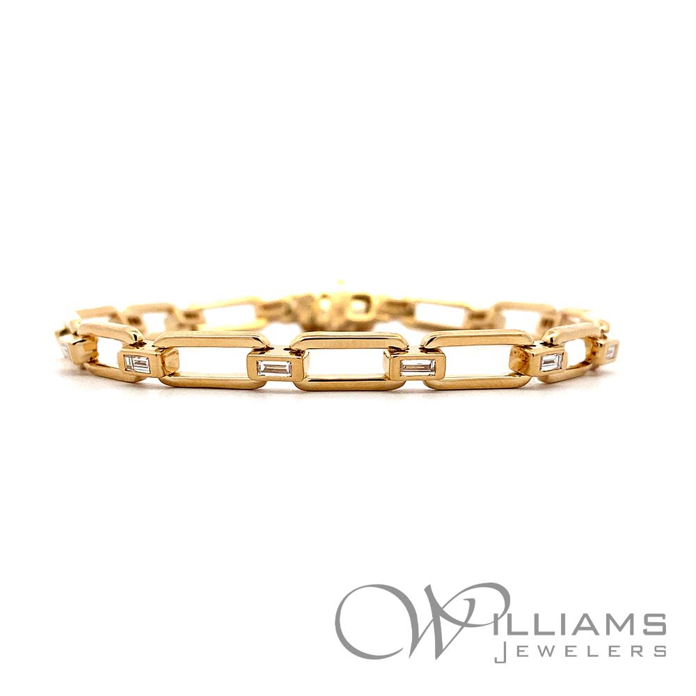 Williams Signature 18 Karat Yellow Gold Diamond Link Bracelet 14=.79 Carat Total Weight Baguette Cut F-G Color, VS Clarity Diamonds. 6.5 Inches in Length