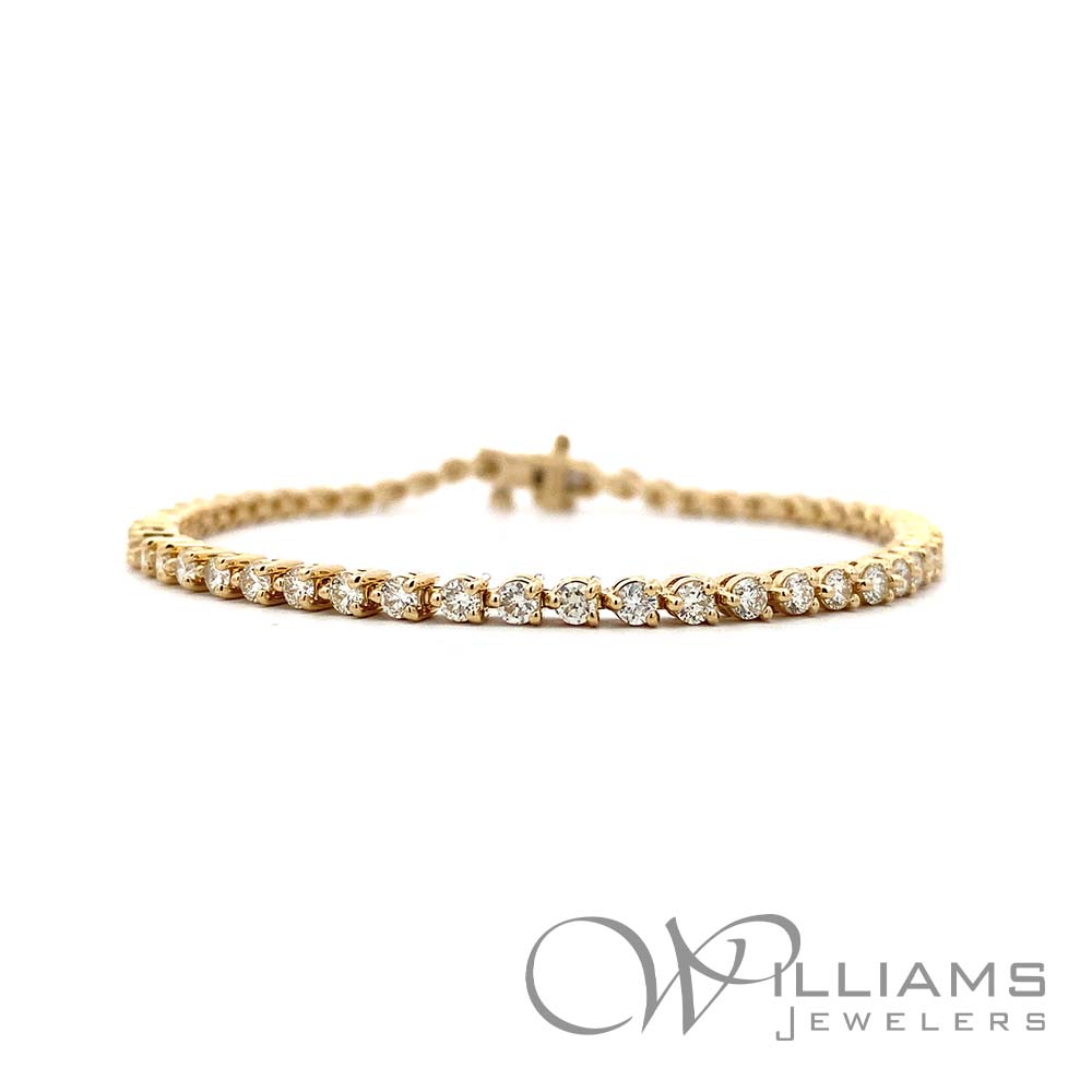 Williams Signature 14 Karat Yellow Gold Diamond Tennis Bracelet with 56=3.00 Carat Total Weight Round G-H Color, SI1-SI2 Clarity Diamonds, 7 inches in length