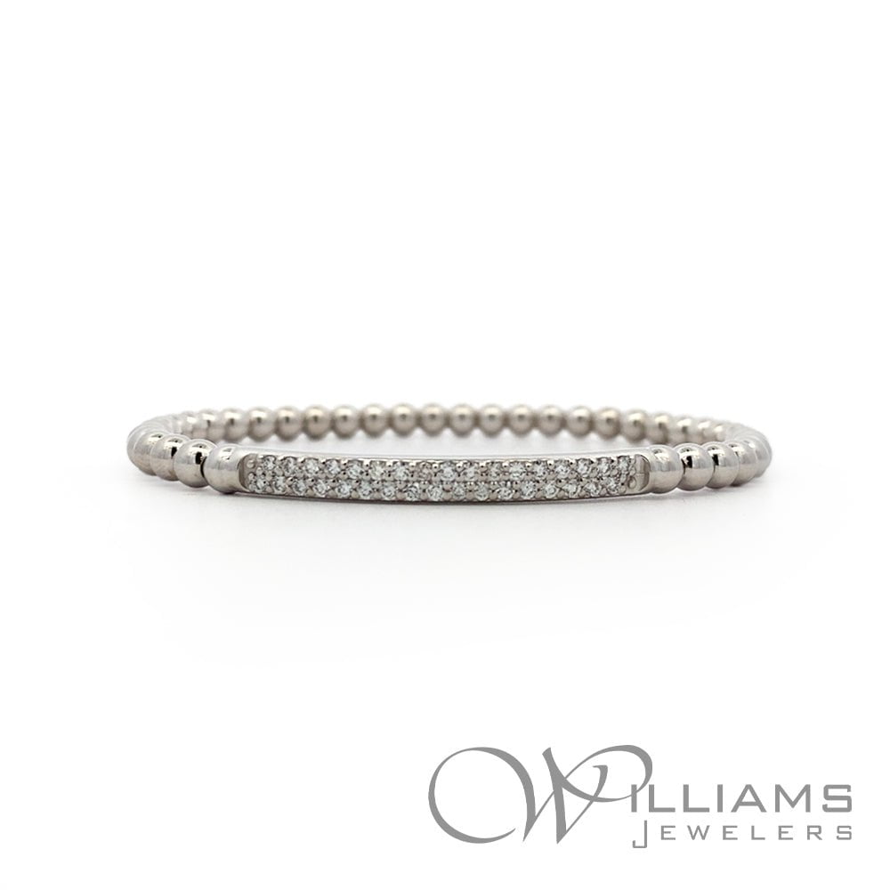 Williams Signature 14 Karat White Gold Diamond 2 Row Stretch Bead Bracelet with 34=.51 Carat Total Weight Round G-H Color, SI1-SI2 Clarity Diamonds