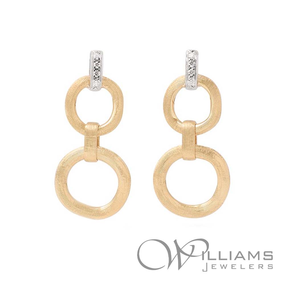 Marco Bicego 18 Karat Yellow & White Gold Jaipur Link Double Drop Diamond Earrings with .08 Carat Total Weight F-G Color, VVS-VS Clarity Diamonds.