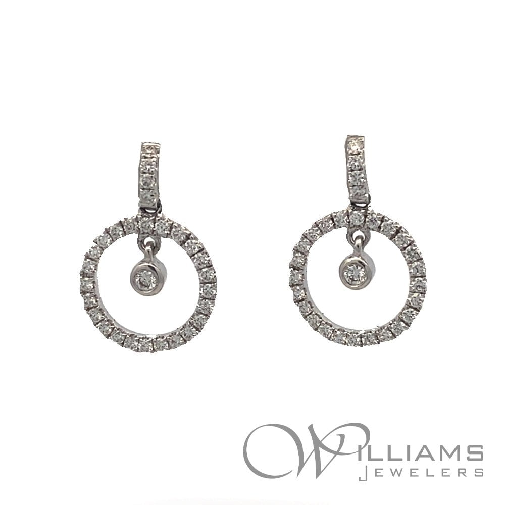 Williams Signature 18 Karat White Gold Diamond Circle Dangle Earrings with .49 Carat Total Weight Round F-G Color, VS Clarity Diamonds