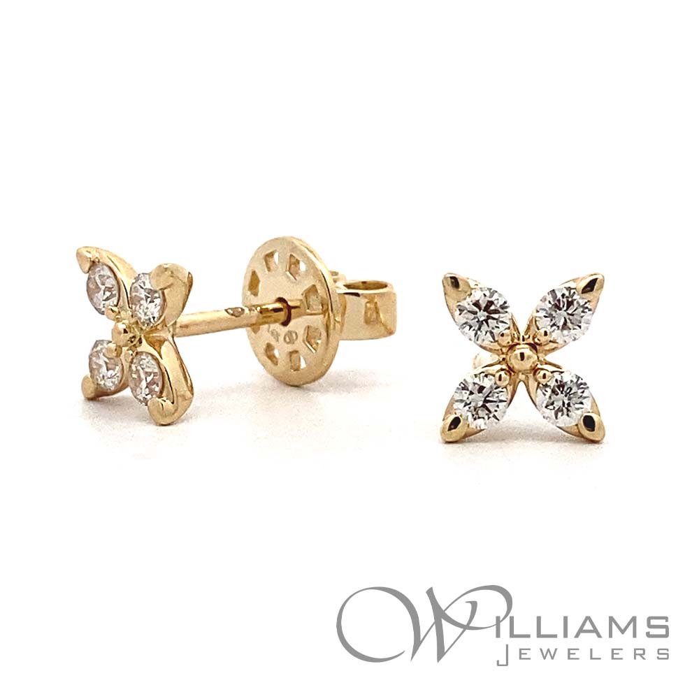 Williams Signature 14 Karat Yellow Gold Diamond Stud Earrings with 8=.33 Carat Total Weight Round I-J Color, I1 Clarity Diamonds.