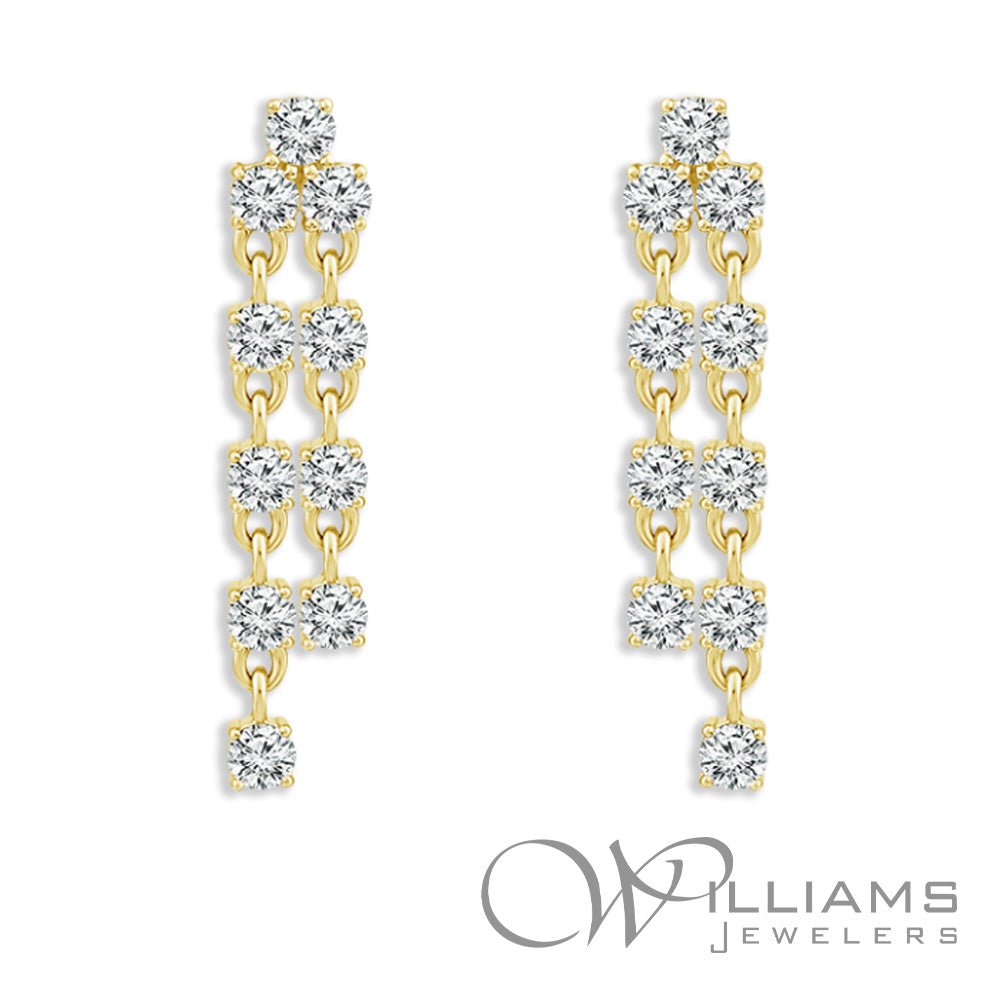 Williams Signature 14 Karat Yellow Gold Double Strand Diamond Dangle Earrings with 20=2.00 Carat Total Weight Round H-I Color, SI Clarity Diamonds