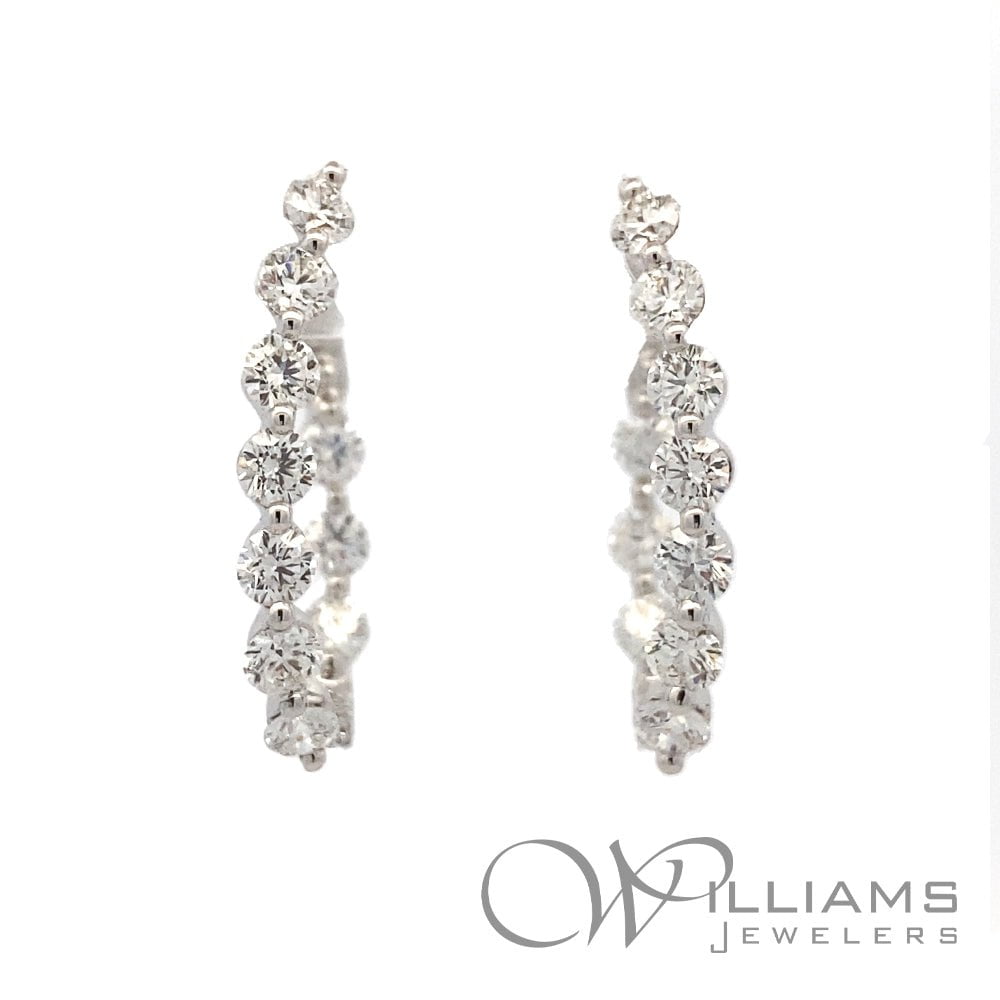 Williams Signature 18 Karat White Gold Diamond Inside-Outside Curved Hoop Earrings with 3.29 Carat Total Weight Round F-G Color, VS Clarity Diamonds