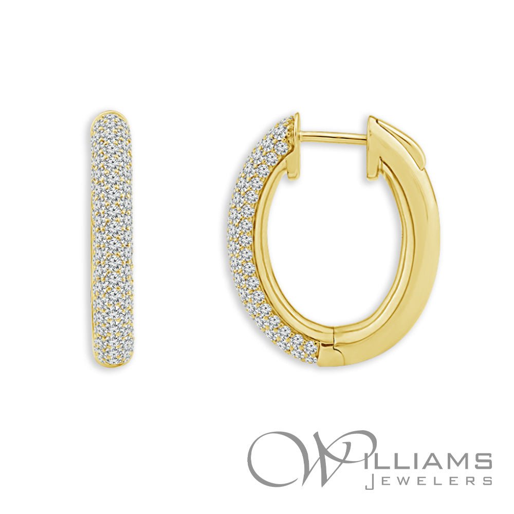 Williams Signature 14 Karat Yellow Gold Pave Diamond and Gold Halved Hoop Earrings with 230=1.50 Carat Total Weight Round G-H Color, SI Clarity Diamonds