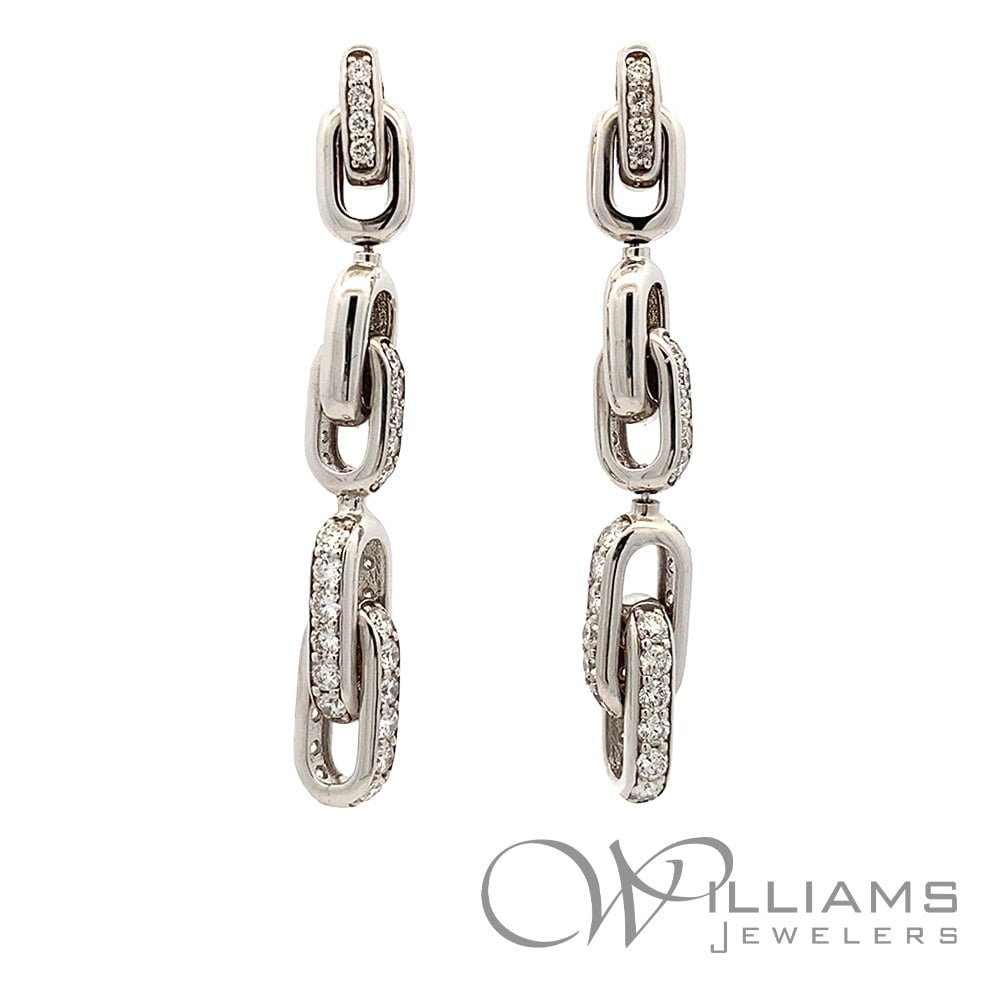 Williams Signature 14 Karat White Gold Pave Diamond Link Earrings with 76=2.15 Carat Total Weight Round G-H Color, SI Clarity Diamonds