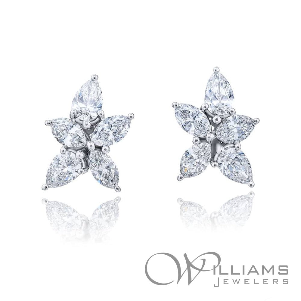 JB Star Platinum Marquise and Pear Shaped Diamond Earrings with 4=1.22 Carat Total Weight Pear Shape and 6=1.42 Carat Total Weight Marquise G Color, VS Clarity Diamonds