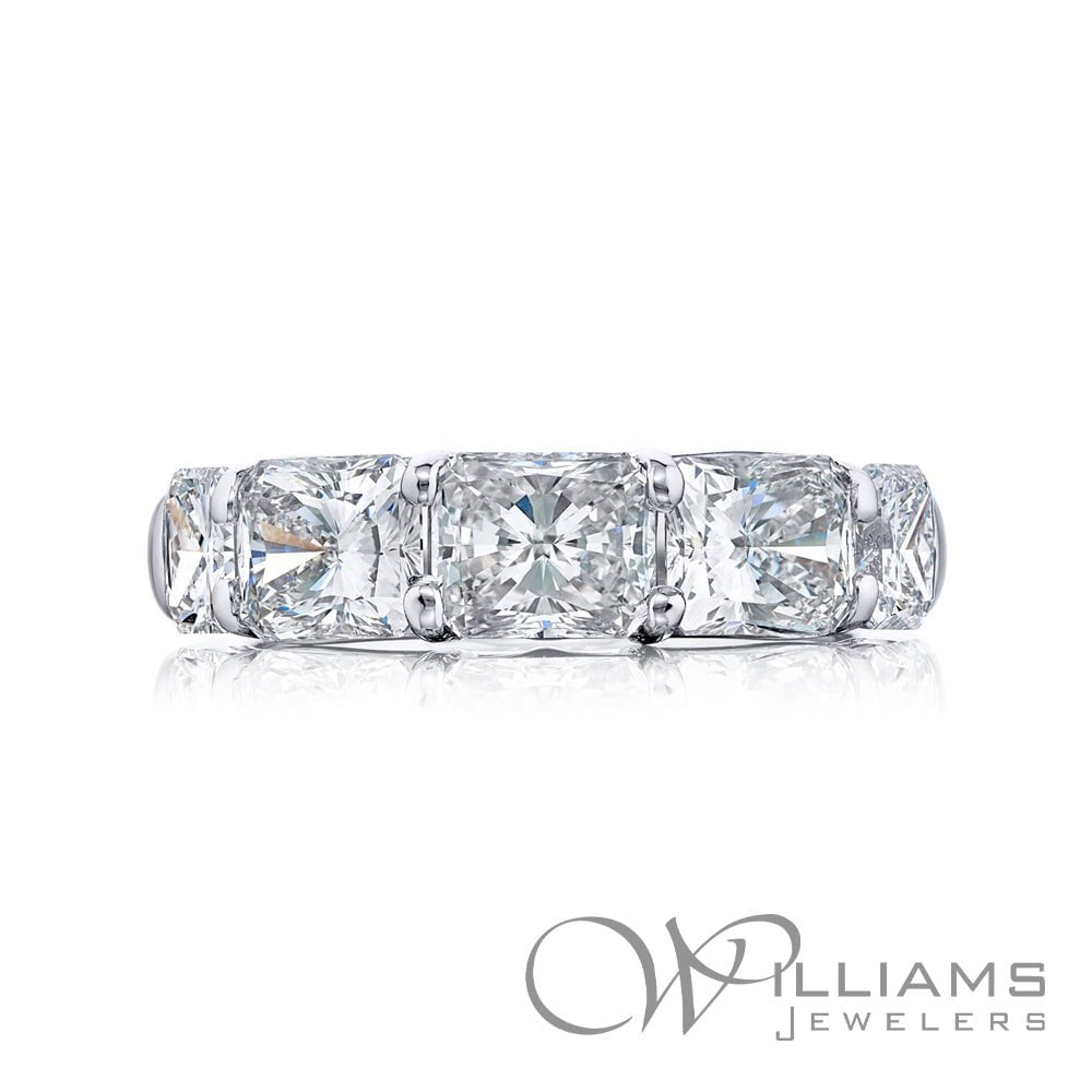 JB Star Platinum Classic Single-Row Radiant-Cut Diamond Band with 5=3.91 Carat Total Weight Radiant G Color, VS Clarity Diamonds, Size 6.75