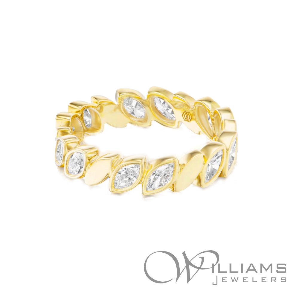Williams Signature 18 Karat Yellow Gold Ring with 1.72 Carat Total Weight Marquise Shaped G-H Color SI Clarity Diamonds, Size 6.5