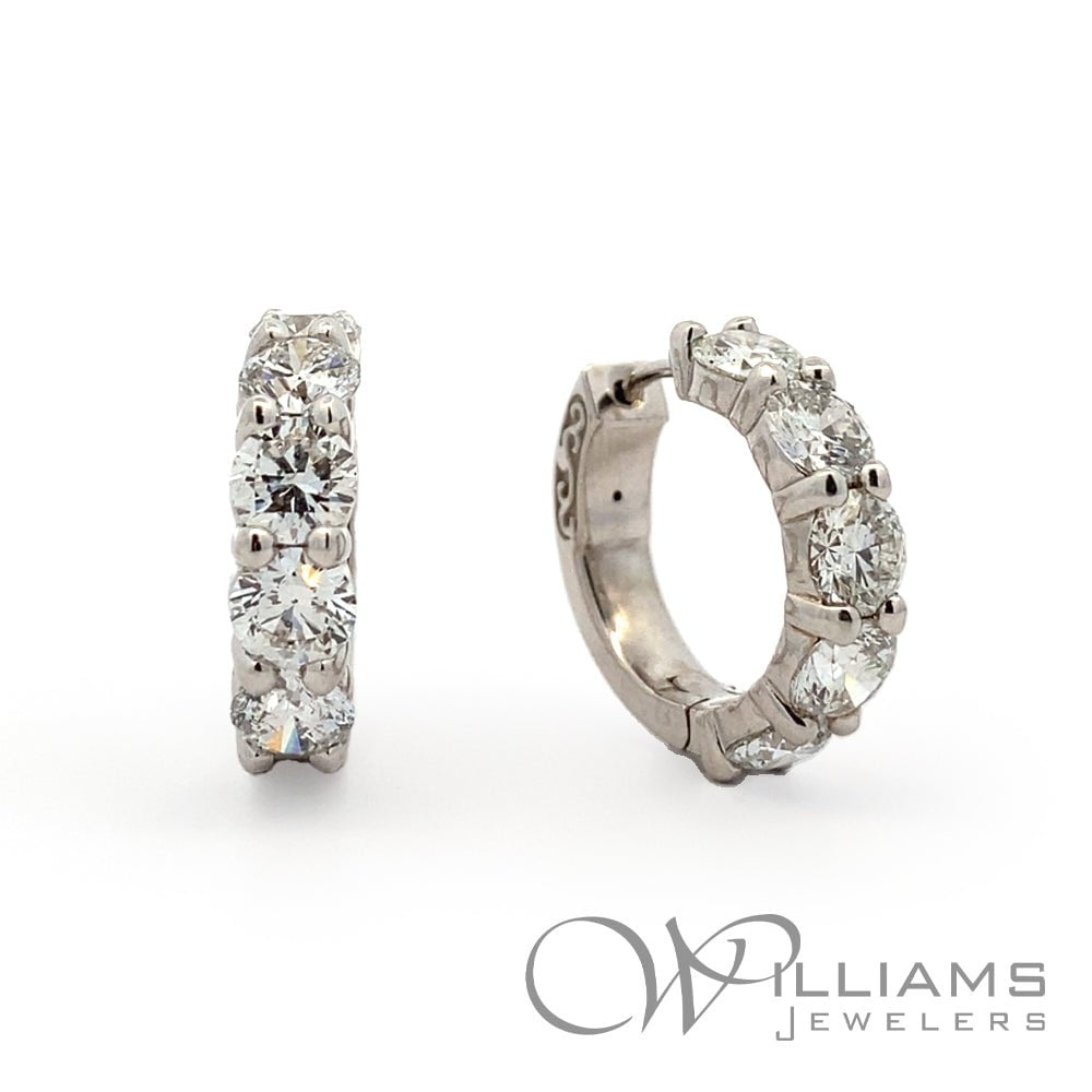 Williams Signature 14 Karat White Gold Diamond Hoop Earrings with 10=5.33 Carat Total Weight Round G-H Color, SI Clarity Diamonds, 20.4mm