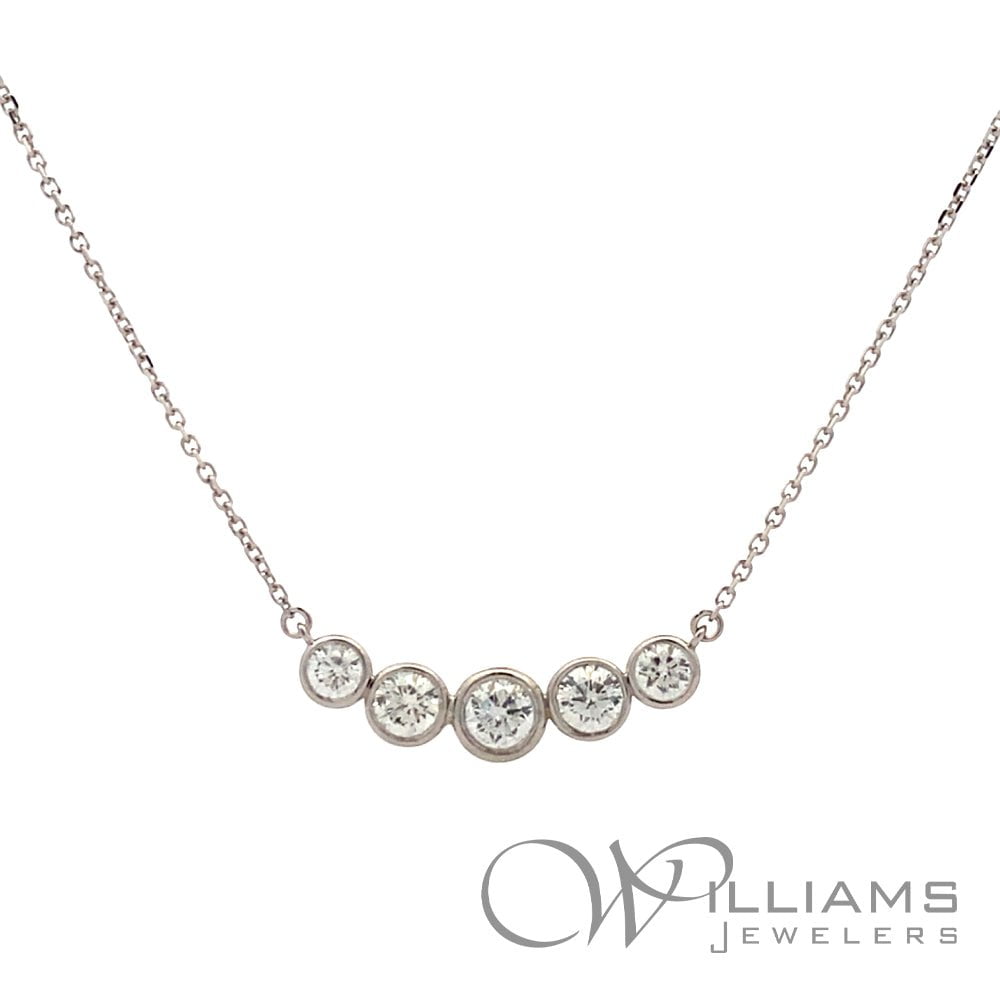 Williams Signature 14 Karat White Gold Bezel Set Diamond Smile Necklace with 5=.83 Carat Total Weight Round G-H Color, SI Clarity Diamonds, 18 Inches in Length