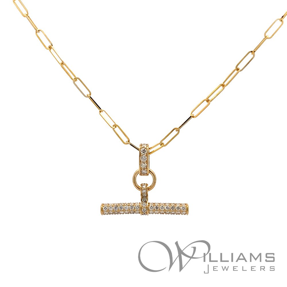 Williams Signature 14 Karat Yellow Gold Diamond and Paperclip Link Necklace with 66=1.07 Carat Total Weight Round G-H Color, SI Clarity Diamonds, 18 inches in length