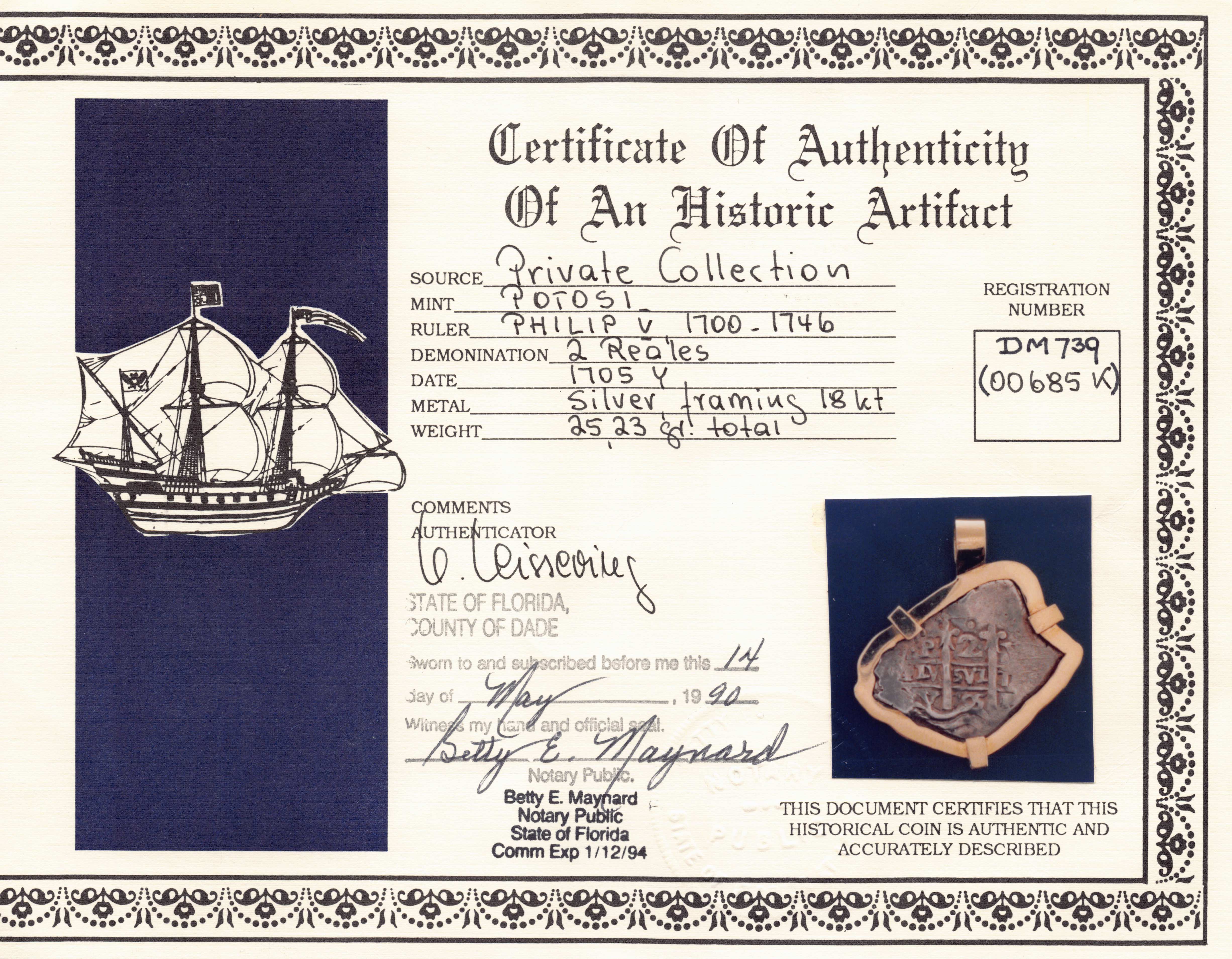 Estate Silver & 18k Coin Pendant