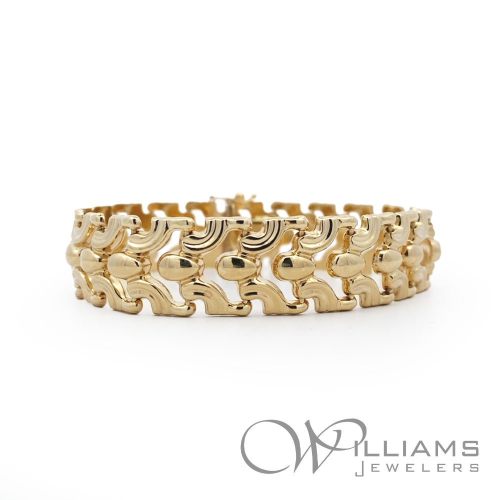 Estate 14 Karat Yellow Gold 14.3mm Ornate Hollow Link Bracelet, 6.75 inches in length
