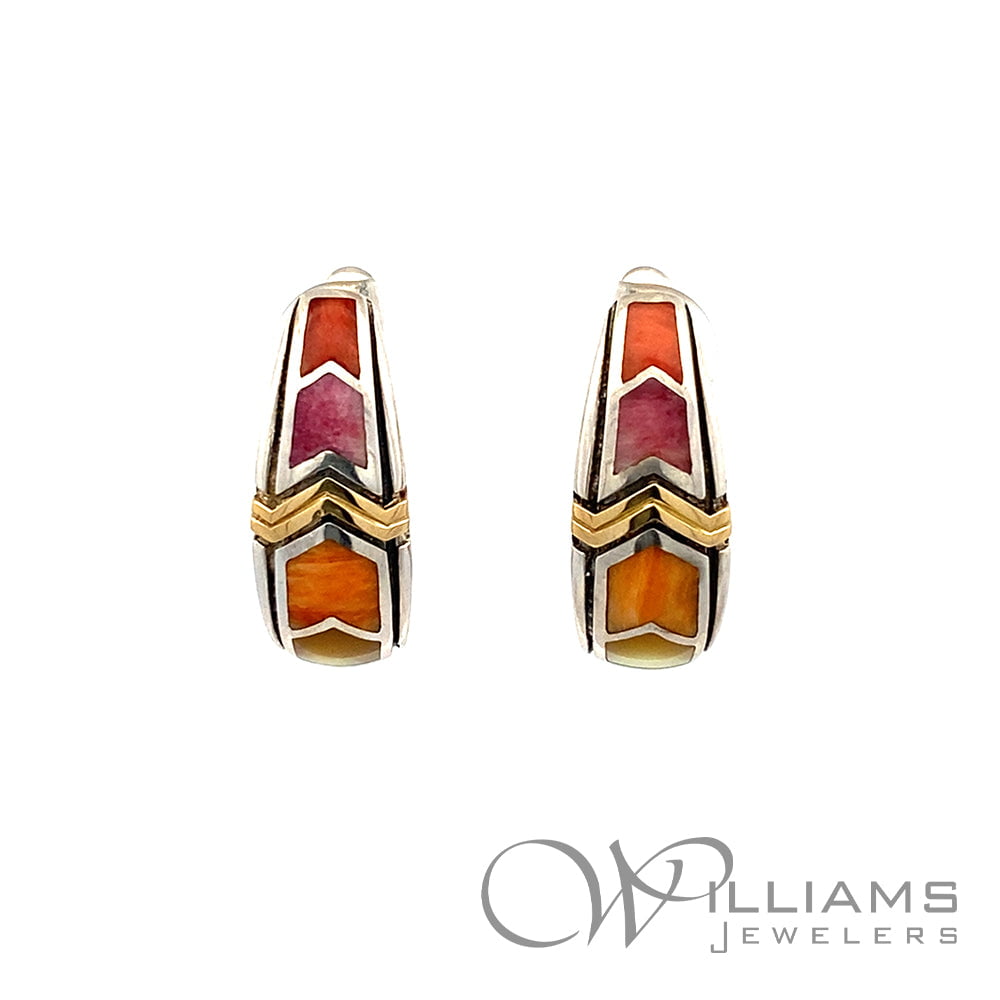 Estate Silver & 18k Multi-Gem Earrings
