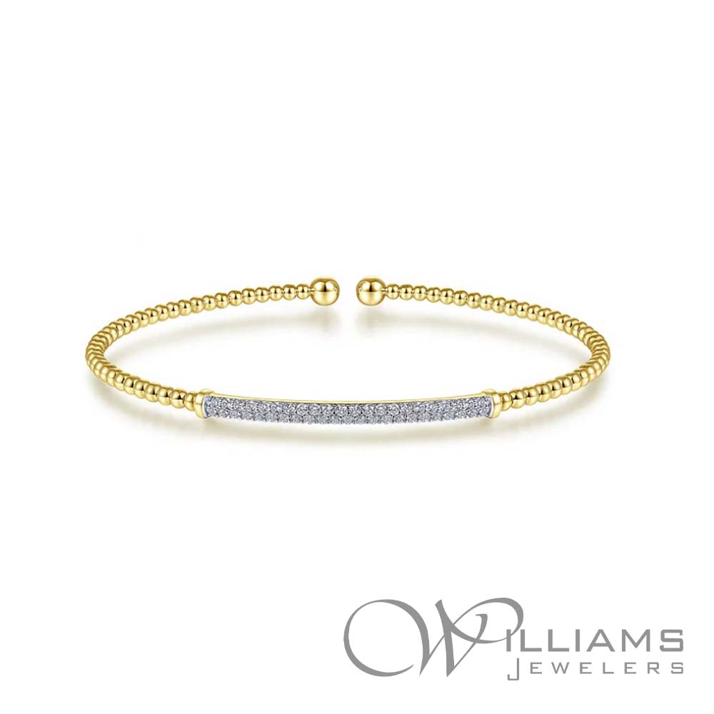 Gabriel & Co. 14 Karat Yellow Gold Bujukan Diamond Split Bar Cuff Bangle with .34 Carat Total Weight Round J Color, SI2 Clarity Diamonds. Size 6, Serial # S1941302