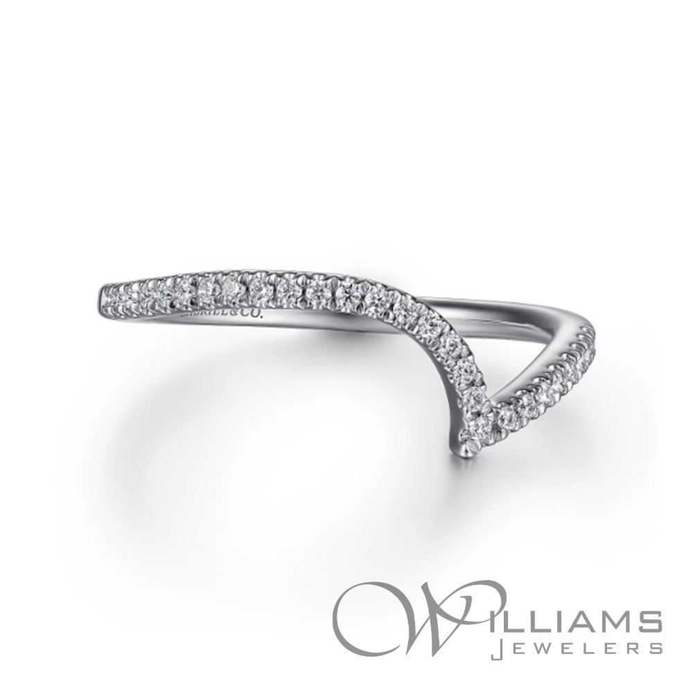 Gabriel & Co. 14 Karat White Gold Contemporary Curved Diamond Band with .13 Carat Total Weight Round G-H Color, SI2 Clarity Diamonds. Size 6.5, Serial # S1254129