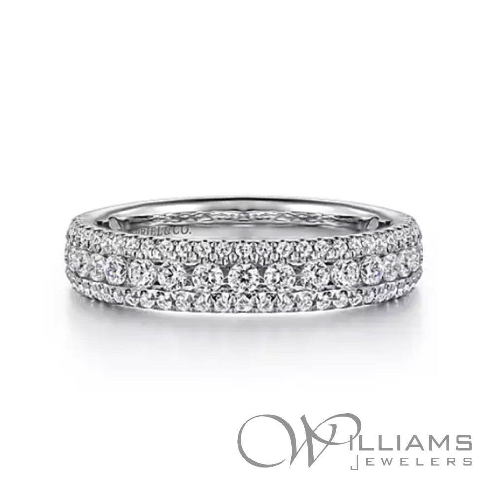 Gabriel & Co. 14 Karat White Gold Contemporary Wide Diamond Anniversary Ring with .73 Carat Total Weight Round G-H Color, SI2 Clarity Diamonds. Size 6.5, Serial # S1785219