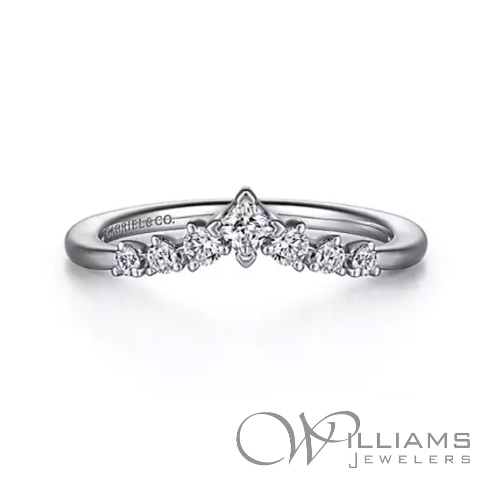 Gabriel & Co. 14 Karat White Gold Contemporary "Raine" Curved Diamond Anniversary Band with .29 Carat Total Weight Princess Cut & Round G-H Color, SI2 Clarity Diamonds. Size 6.5. Serial# S2221555