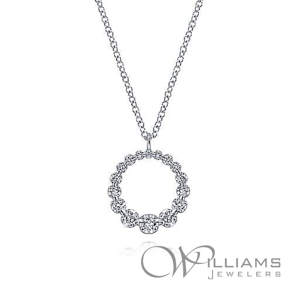 Gabriel & Co. 14 Karat White Gold Lusso Diamond Circle Pendant Necklace with .25 Carat Total Weight Round J Color, SI2 Clarity Diamonds, 17.5 Inches in Length, Serial# S2026255.