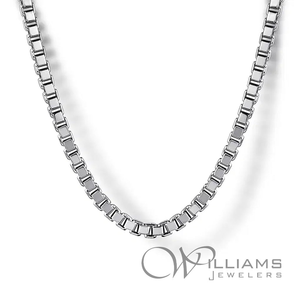 Gabriel & Co. Sterling Silver Classic 2.5mm Solid Men's Box Chain Necklace, 22 Inches in length. Serial# S2223104