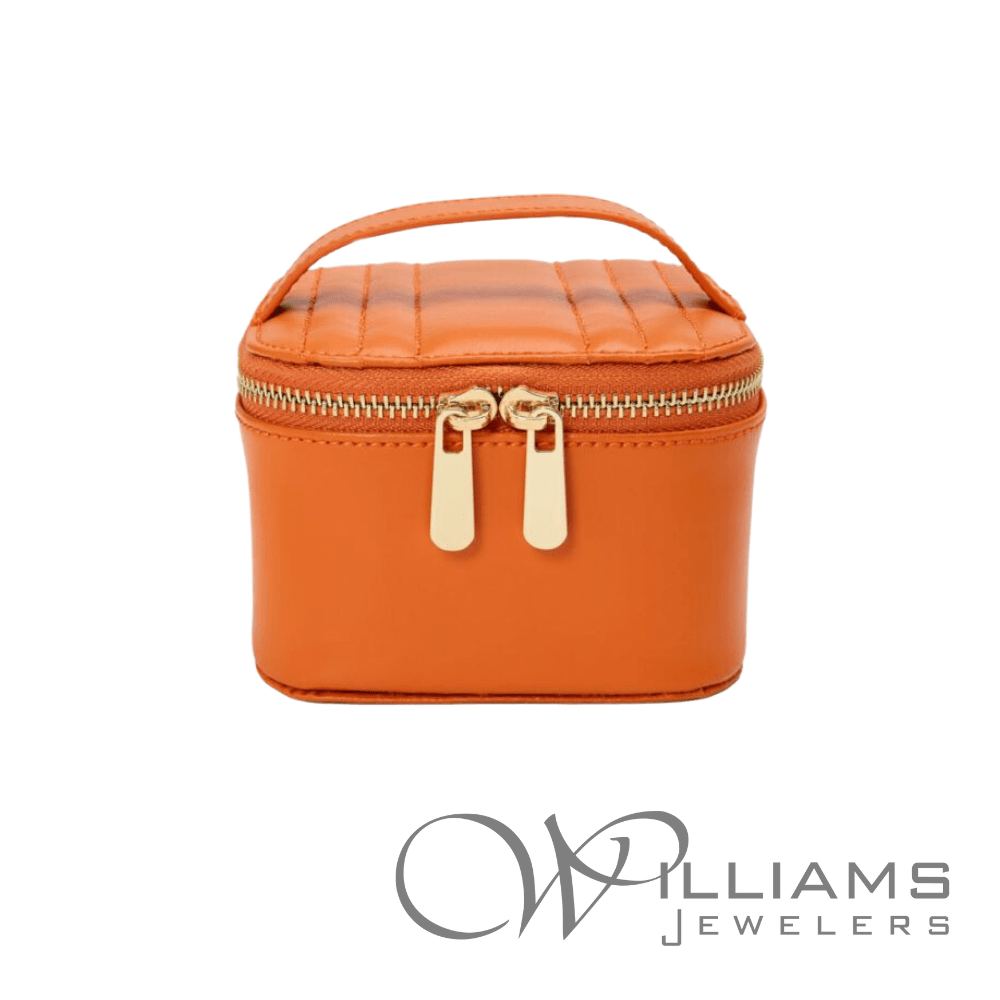 Wolf Designs Maria Zip Jewelry Cube in Tangerine with Ring Bar, Earring Bar, and 5 Zip Compartments