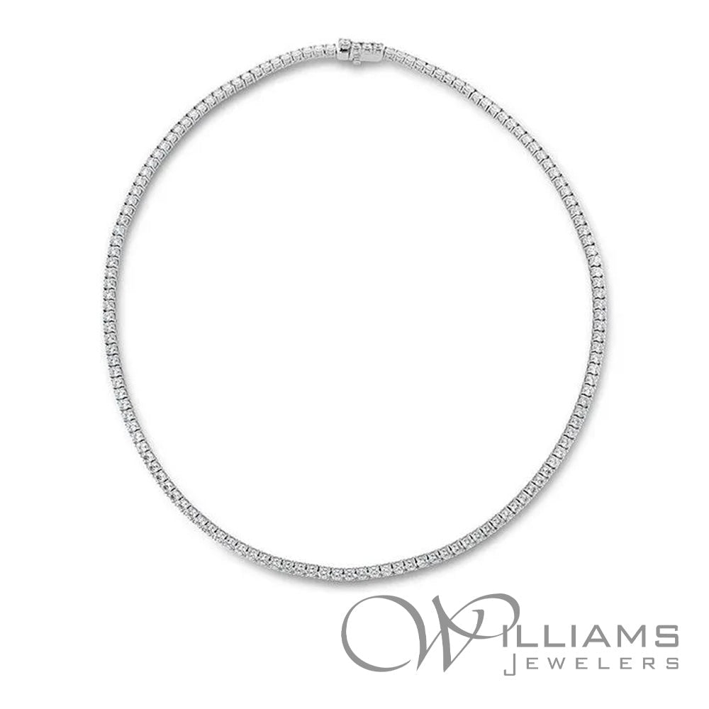 Hearts On Fire 18 Karat White Gold Signature Uniform Diamond Line Necklace with 10.78 Carat Total Weight Round G-H Color, VS-SI Clarity Diamonds, 16 inches in length