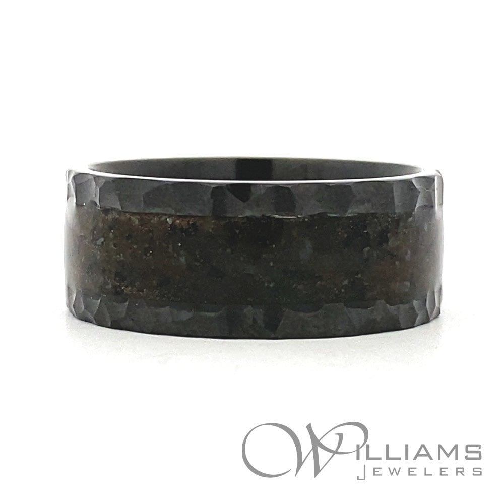 Heavy Stone Zirconium 9mm Hammered Brown Dino Inlay Flat Wedding Band. Size 10