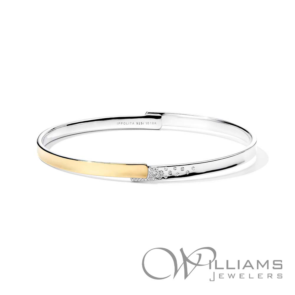 Ippolita Sterling Silver and 18 Karat Yellow Gold Chimera Stardust Overlapping Diamond Bangle with .31 Carat Total Weight H-I Color, SI-I Clarity Diamonds. Size 2