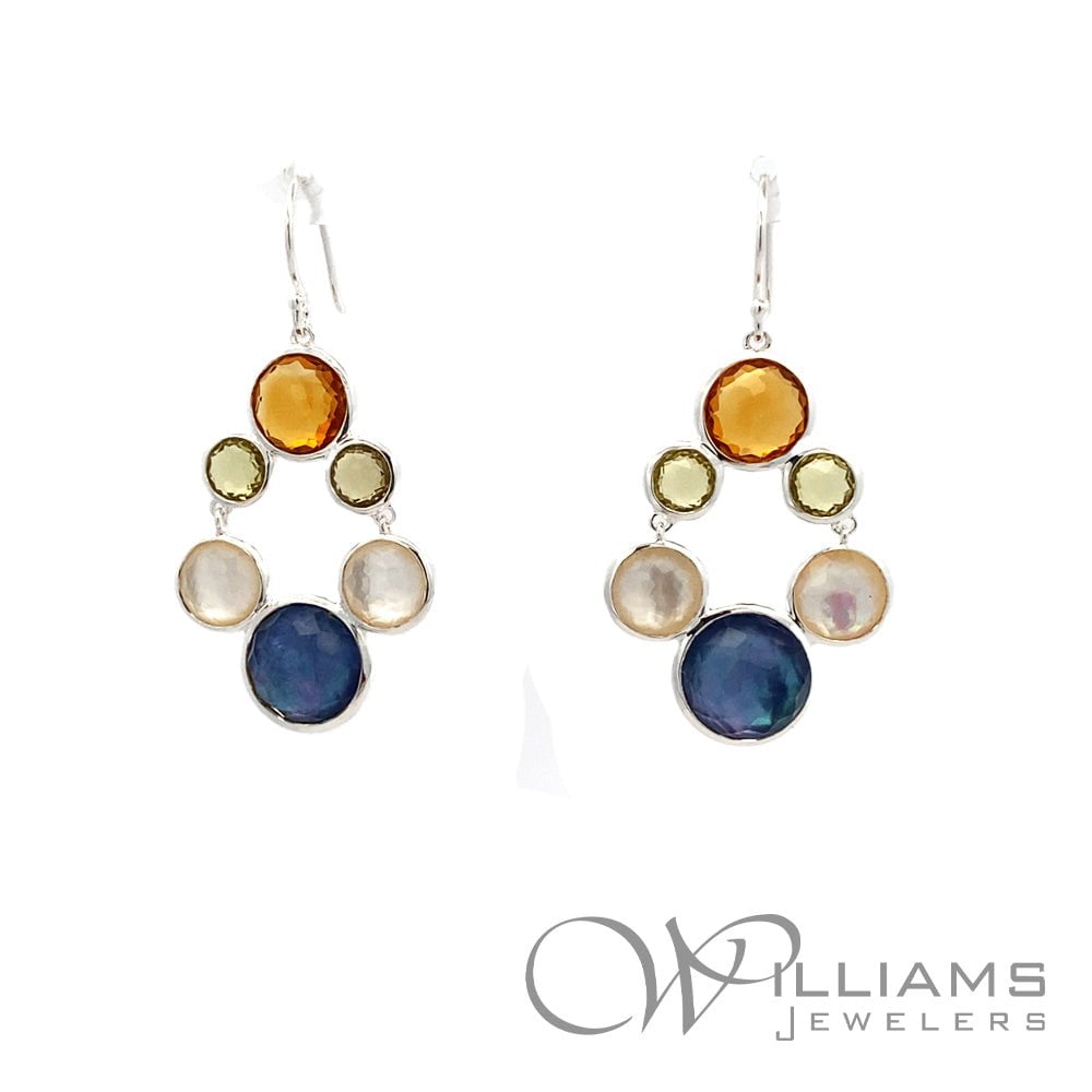 Ippolita Sterling Silver Lollipop Lollitini Small Chandelier Earrings with Lapis, Mother of Pearl, Rock Crystal and Citrine.