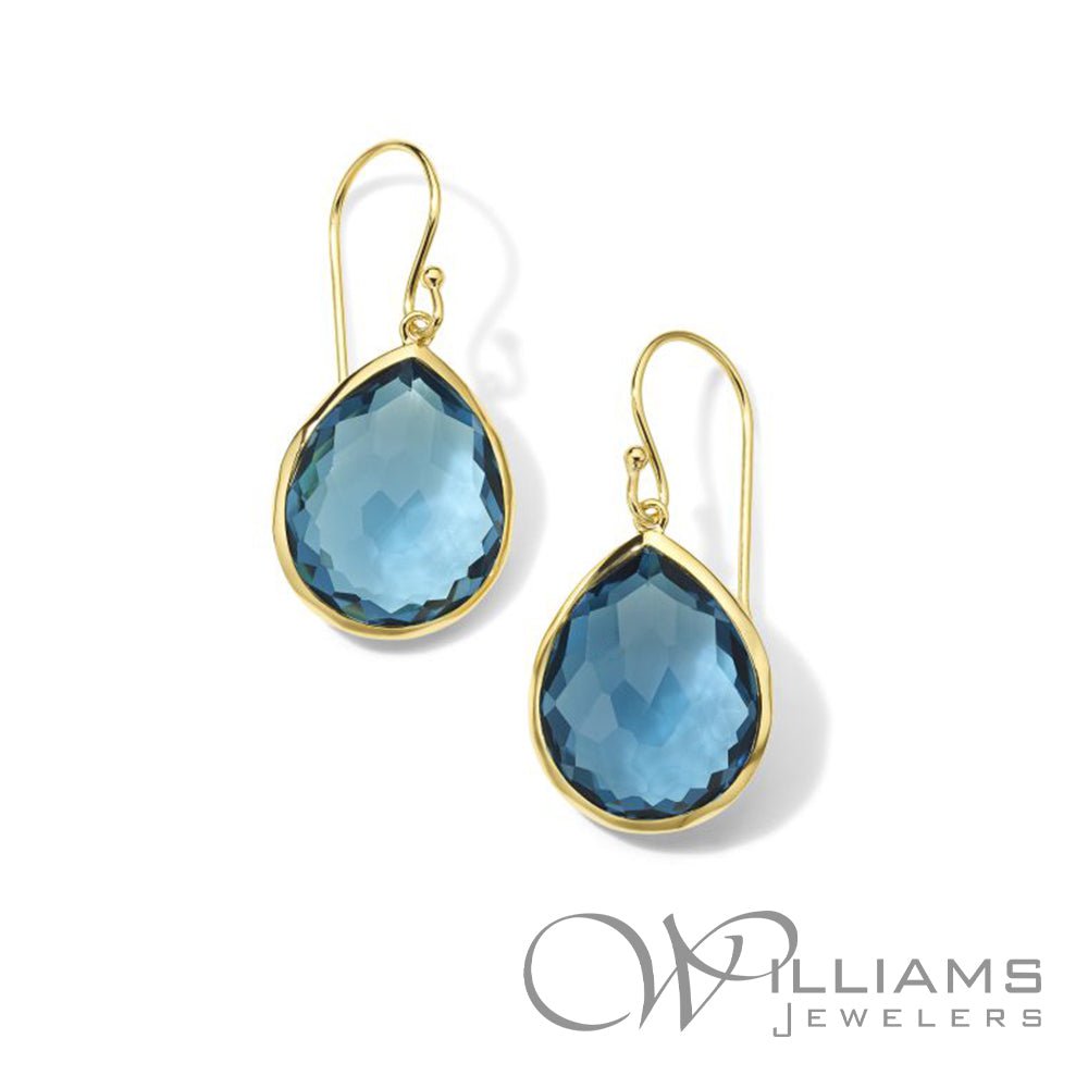 Ippolita 18 Karat Yellow Gold Rock Candy Medium London Blue Topaz Teardrop Earrings.