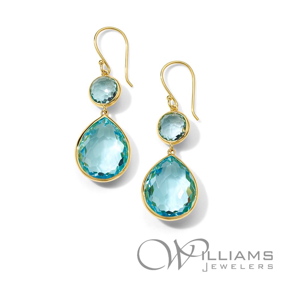 Ippolita 18 Karat Yellow Gold Rock Candy Snowman Blue Topaz Teardrop Earrings.