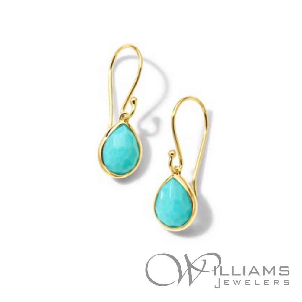 Ippolita 18 Karat Yellow Gold Rock Candy Teeny Turquoise Teardrop Earrings.