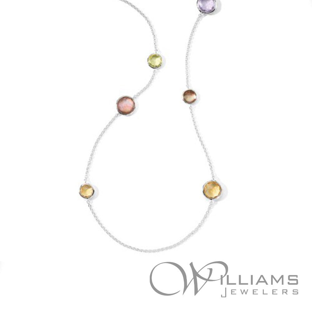 Ippolita Sterling Silver Rock Candy Muti Stone Station Necklace with Rock Crystal, Brown Shell Doublet, Orange Citrine, Amethyst, Blue Topaz, Green Gold Citrine. 40 Inches in Length