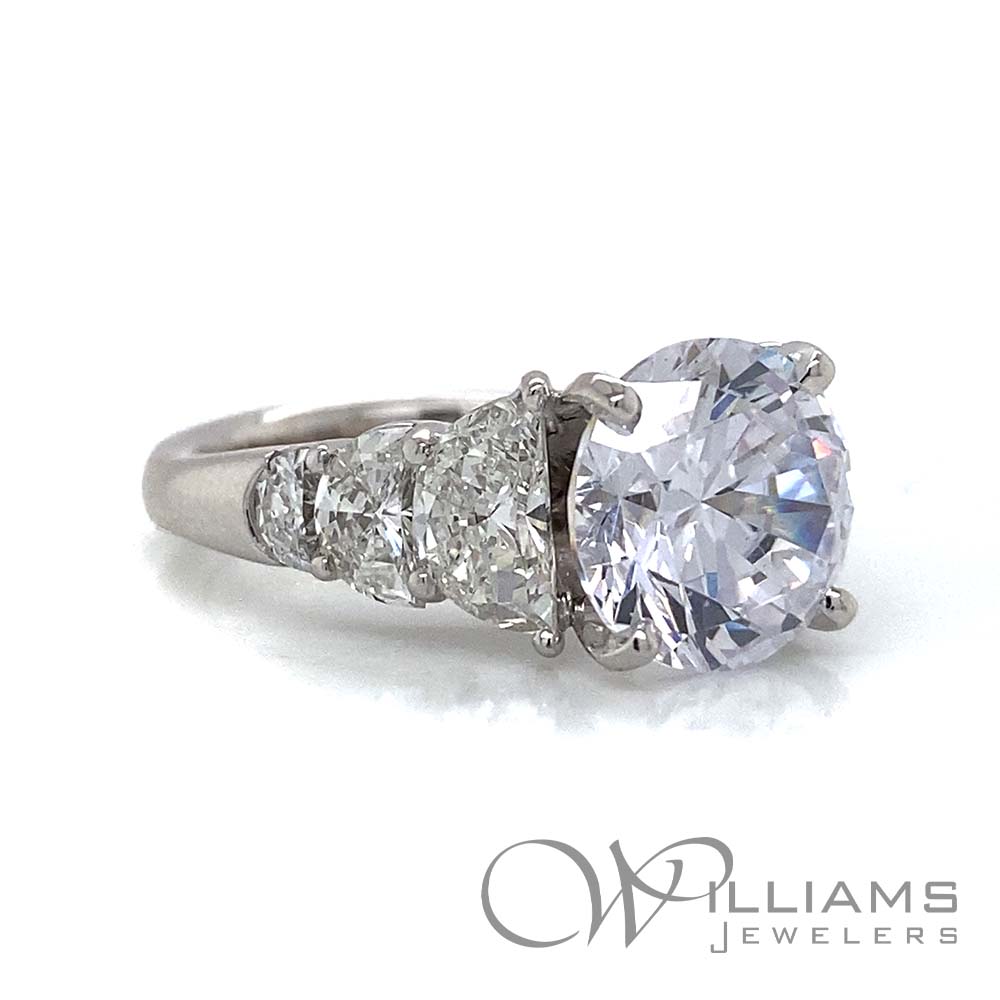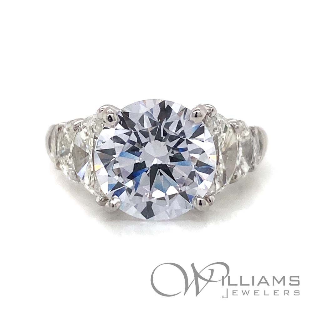 JB Star Platinum Square Half Moon Diamond Semi-Mount Ring with 6=2.18 Carat Total Weight Half Moon G Color, VS Clarity Diamonds and a center 10mm (3.75ct) Round Cubic Zirconia, Size 5.5