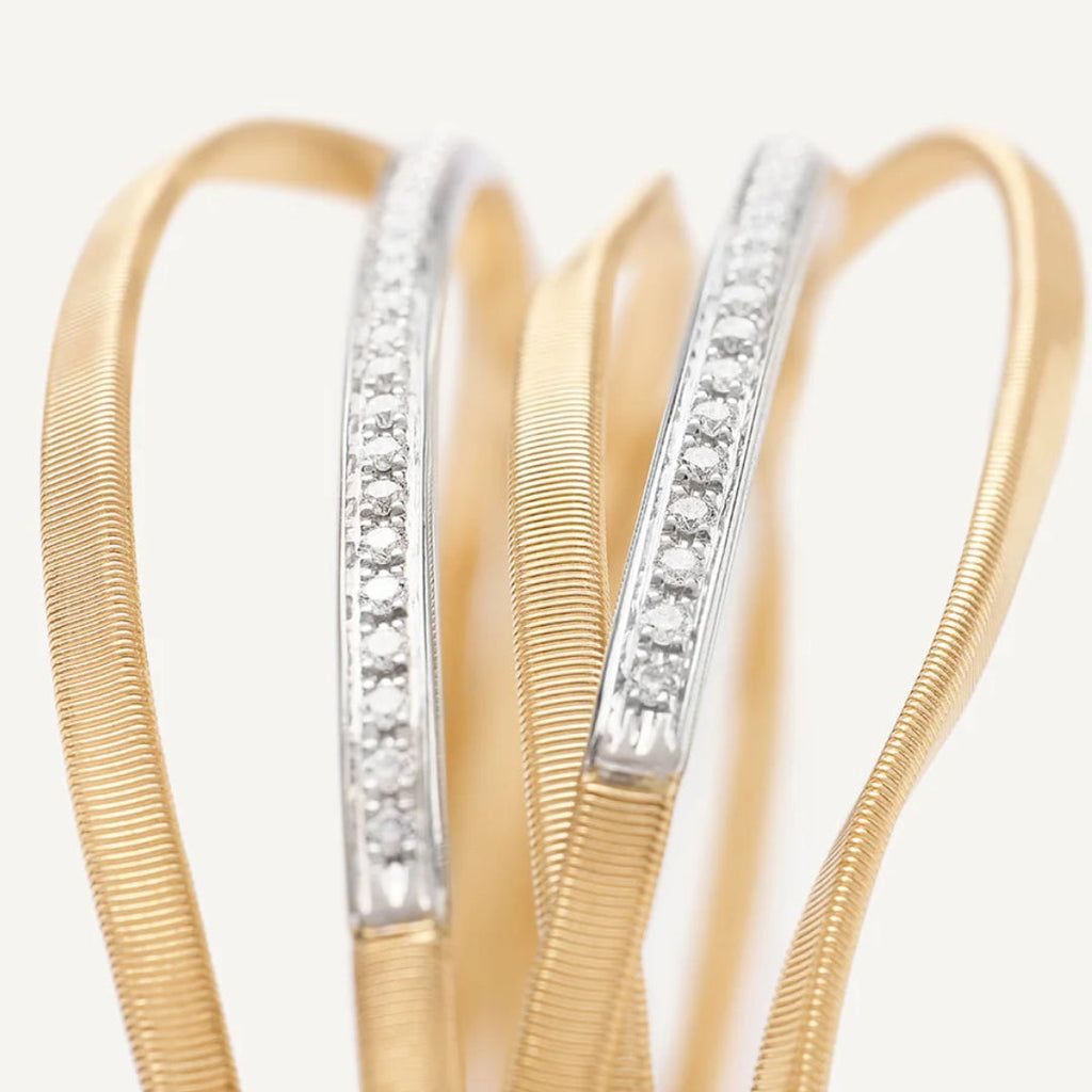 Marco Bicego 18 Karat Yellow Gold Marrakech 5 Strand Diamond Bar Bangle with .38 Carat Total Weight Round F-G Color, VVS-VS Clarity Diamonds. Size 2.4
